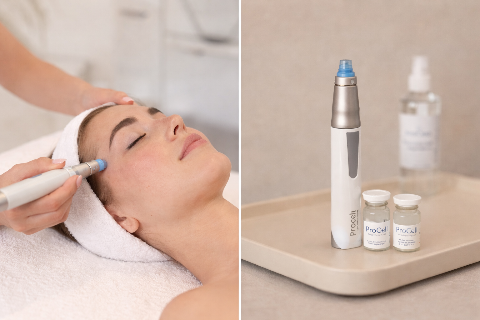 At Glow Up Studio, we offer advanced collagen-stimulating treatments like ProCell Microchanneling, designed to improve skin texture, firmness, and overall skin quality over time. Using a precise stamping technique, microchanneling activatse the body’s natural repair process and enhance the absorption of targeted growth-factor serums. Unlike hydrafacial-style treatments that focus on cleansing and hydration, microchanneling is a corrective treatment that works deeper to support collagen and elastin production, making it ideal for fine lines, acne scarring, uneven texture, discoloration, and loss of firmness, all with less downtime than traditional microneedling.